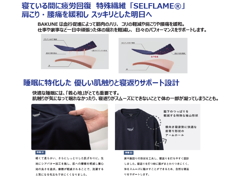 眠りの中での効率的な疲労回復を追求して設計されたリカバリーウェア。
