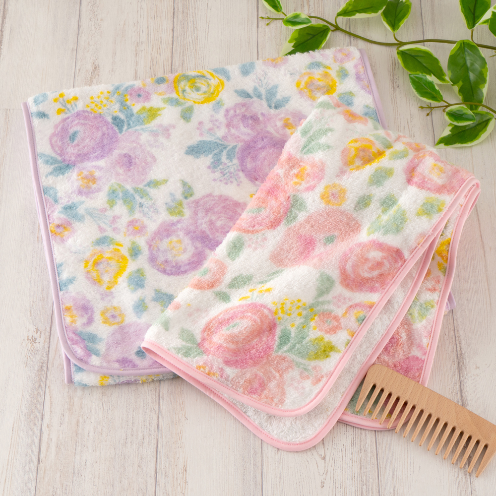 ■ラナンキュラスを淡く柔らかい色合いで描かれた上品なタオルです。